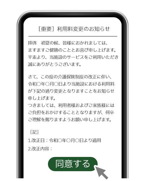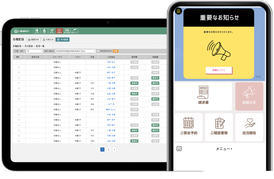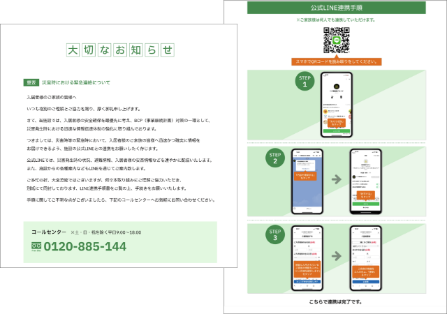 施設の公式LINEを活用し、介護施設DXと連携する事で、各種案内など、