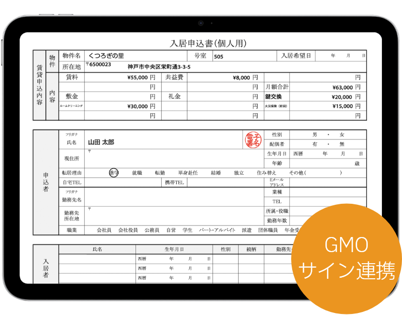 書類に対応入力欄に合わせて、押印や手書き署名、日
